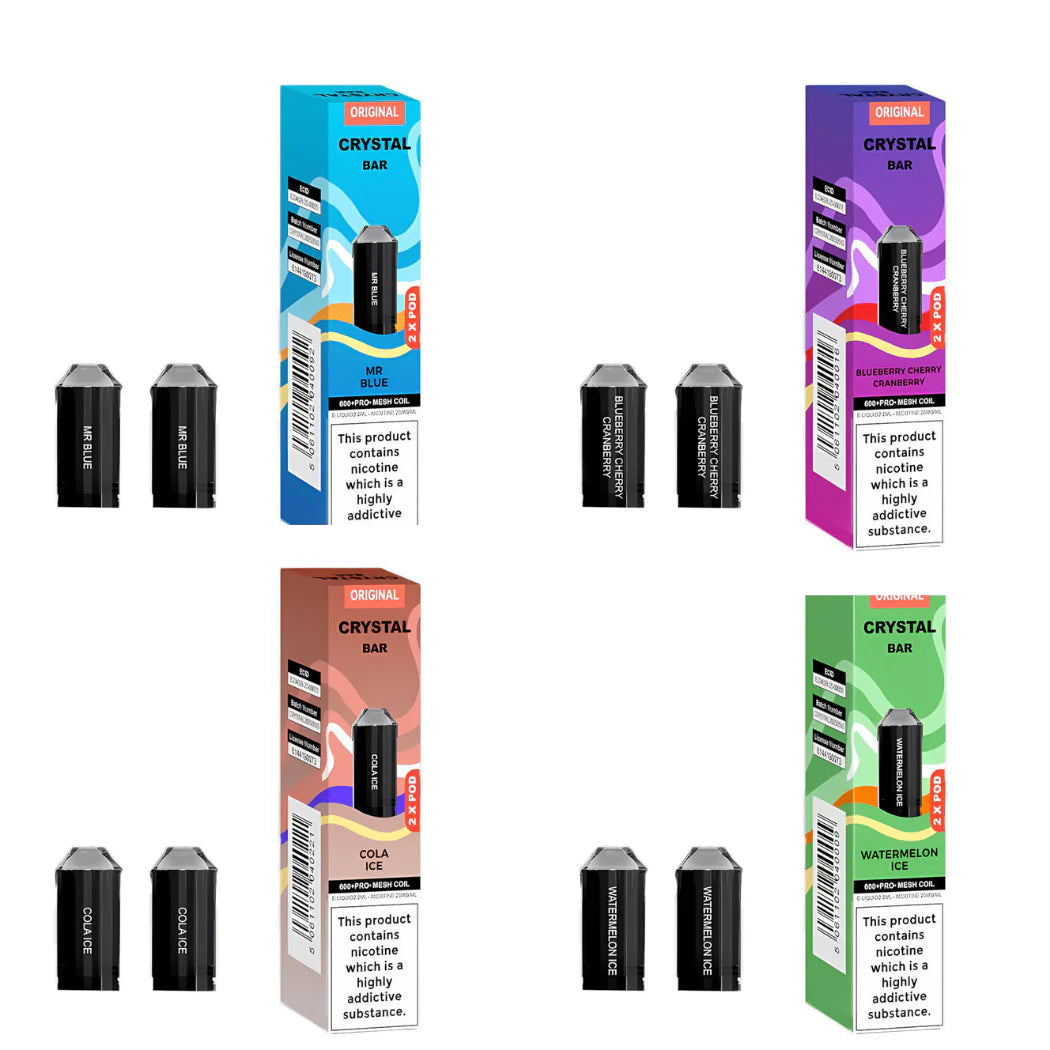The Crystal Bar 600 Prefilled Pod is designed to deliver a smooth, effortless vaping experience with bold flavour and simplicity right from the first puff. Built for convenience and portability, this prefilled pod system is perfect for vapers who want reliable performance without the complexity of refilling or button adjustments. With its ergonomic design and satisfying draw-activated inhale, the Crystal Bar 600 combines classic vape ease with rich nicotine salt delivery for a consistent, enjoyable session every time. Whether you enjoy refreshing menthol, juicy fruit blends, or familiar tobacco notes, this disposable-style pod delivers vibrant taste and dependable vapour production in a sleek, compact format.