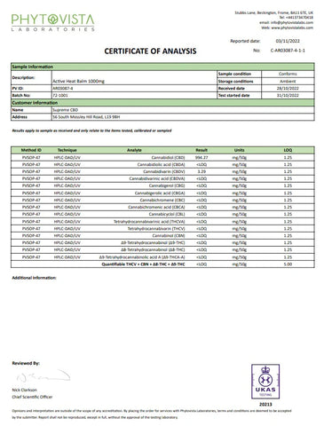 How To Use: Apply a thin layer of the Supreme CBD active heat balm to the affected skin no more than 3 or 4 times a day. Wash your hands before and after each use, making sure none of the heat balm contacts the eyes.